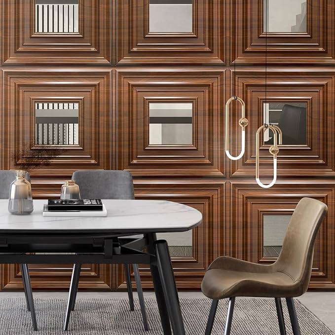 12 Pack PVC Ceiling Tiles 19.7"x19.7" – Silver Mirror & Wood Grain 3D Wall Panels for Wall and Ceiling Decoration,Cover 32.3 Sq.Ft – Waterproof,Lightweigh(Dark Brown, Silver)