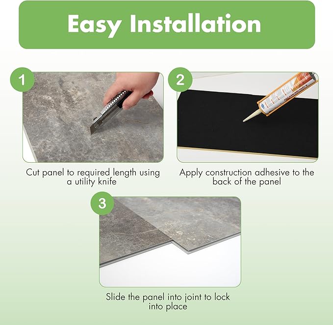 - Seamless Locking System:Precision-engineered interlocking edges achieve virtually invisible, seamless joints. Compared to traditional tile installation, it saves over 50% in labor time—a standard bathroom can be completed in just 2 hours. Maintains wall integrity even in humid environments.